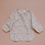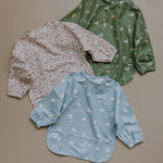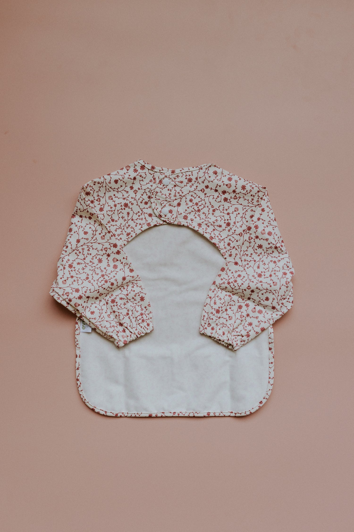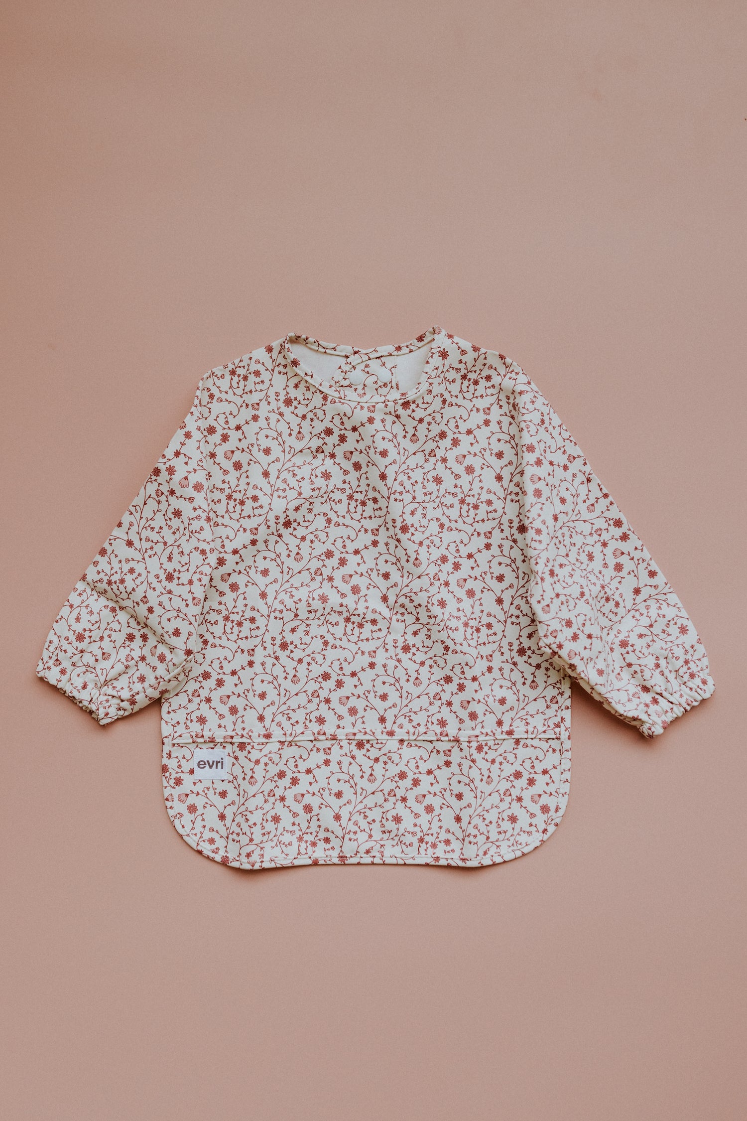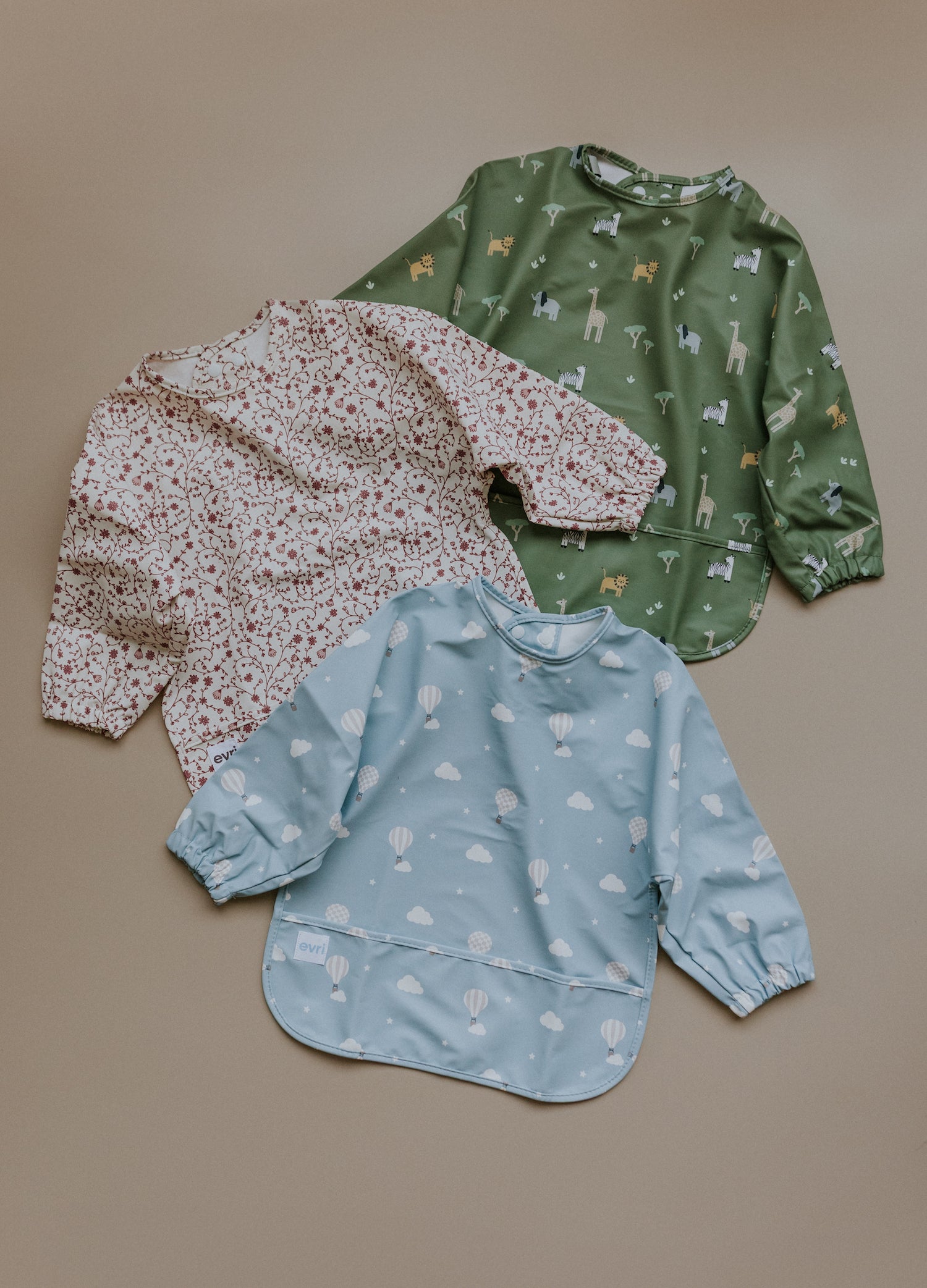 Mealtime just got a whole lot easier with our long-sleeved smock. Designed with generous coverage from neck to lap and wrist to wrist, this smock keeps clothes protected during meals, snacks, art time, and everything in between. Elasticized cuffs prevent sleeves from dragging through food, while the extended front pocket catches spills and crumbs.