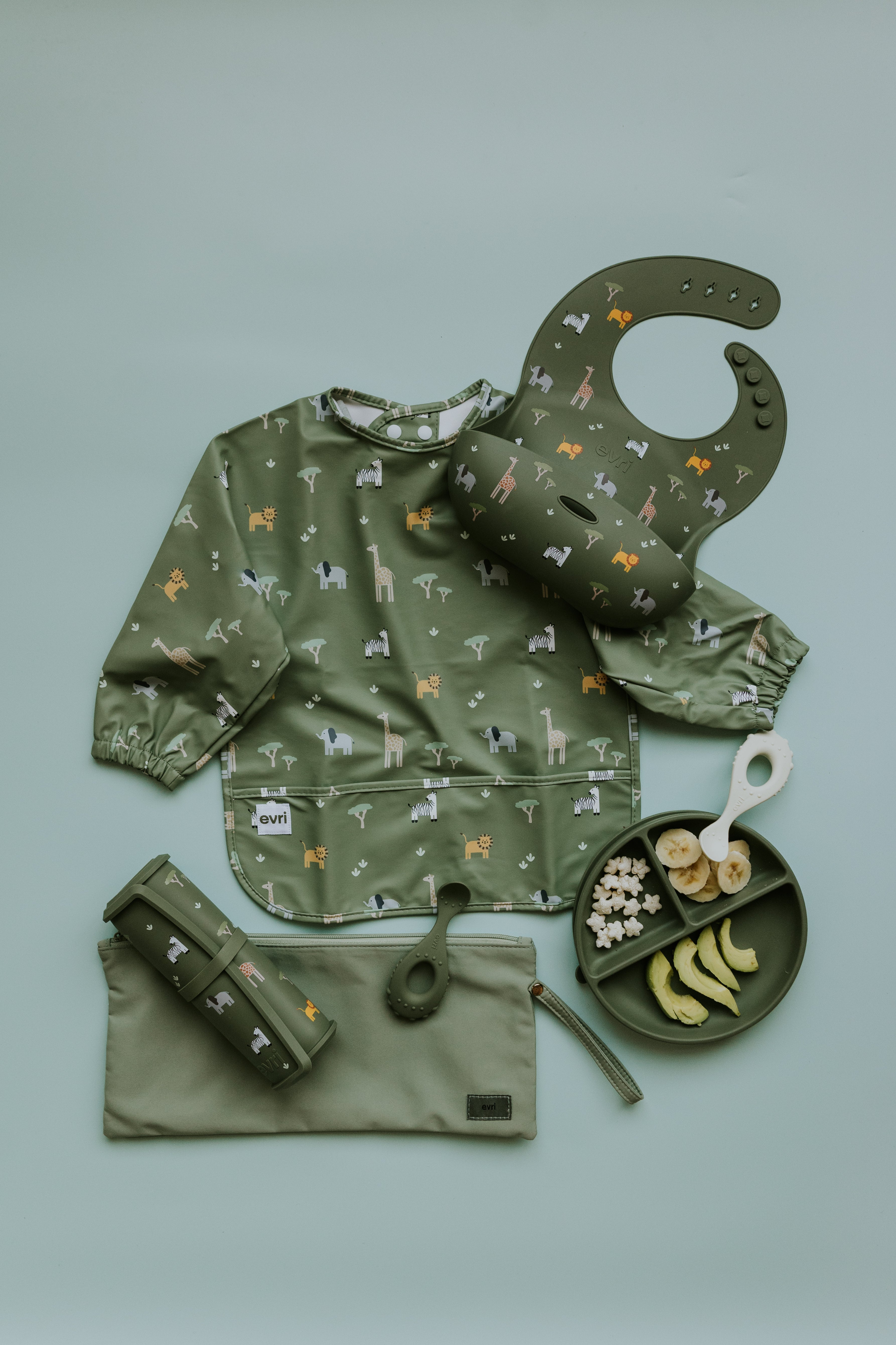 Made with durable, easy-to-clean fabric that wipes down in seconds or tosses right into the washing machine. Perfect for toddlers mastering utensils, preschoolers getting creative, or any child who loves to get a little messy at mealtime!