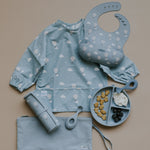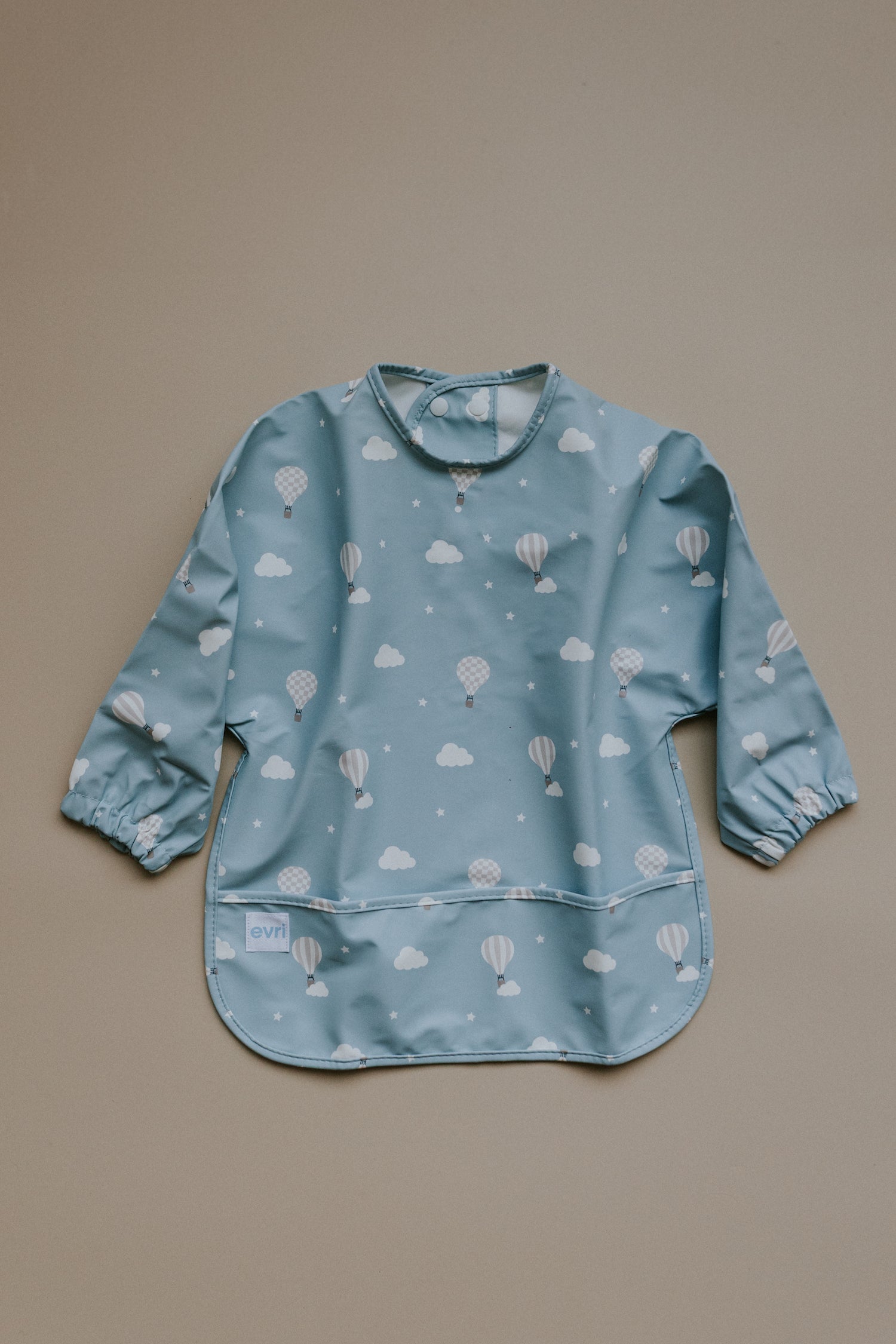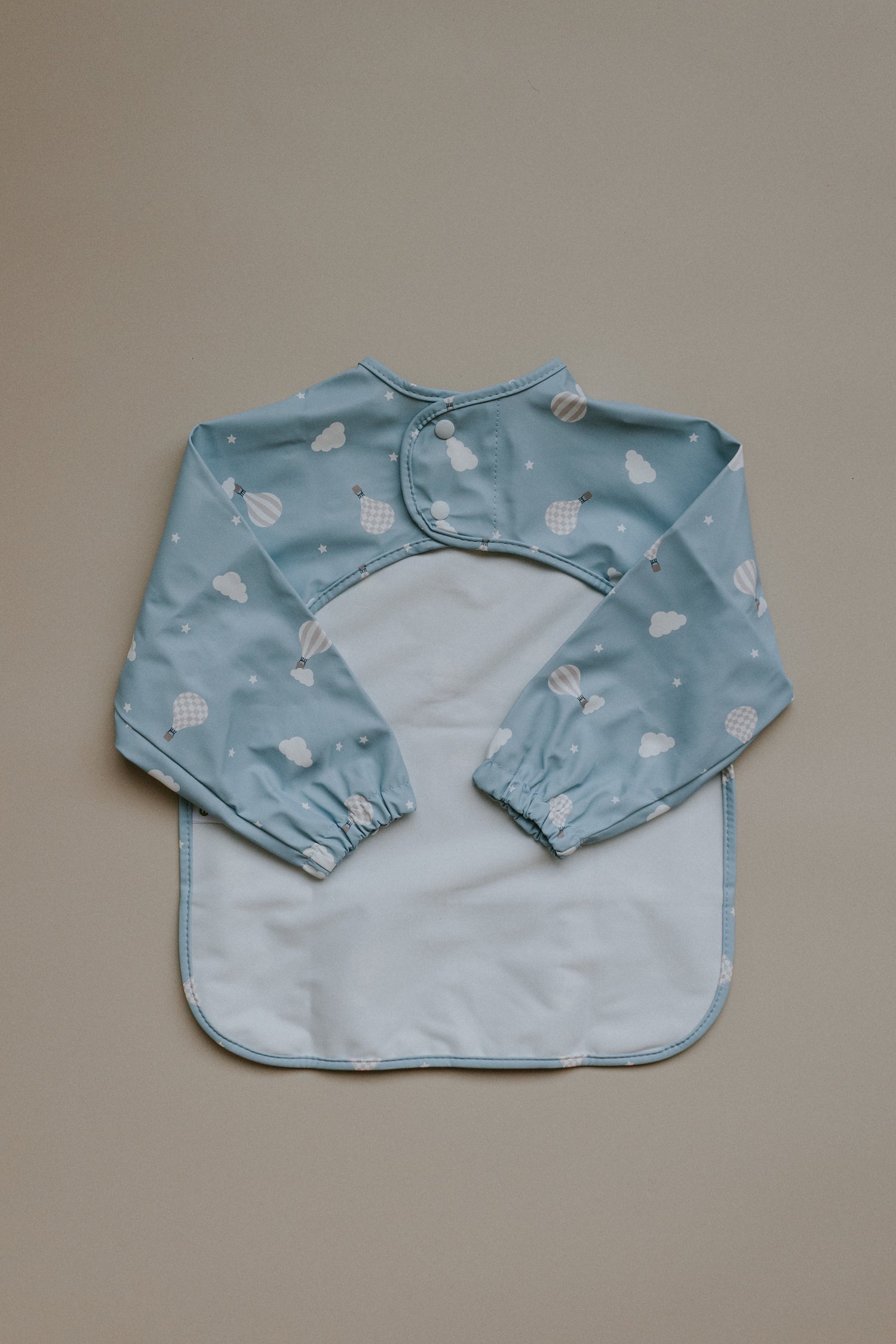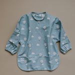 Mealtime just got a whole lot easier with our long-sleeved smock. Designed with generous coverage from neck to lap and wrist to wrist, this smock keeps clothes protected during meals, snacks, art time, and everything in between. Elasticized cuffs prevent sleeves from dragging through food, while the extended front pocket catches spills and crumbs.